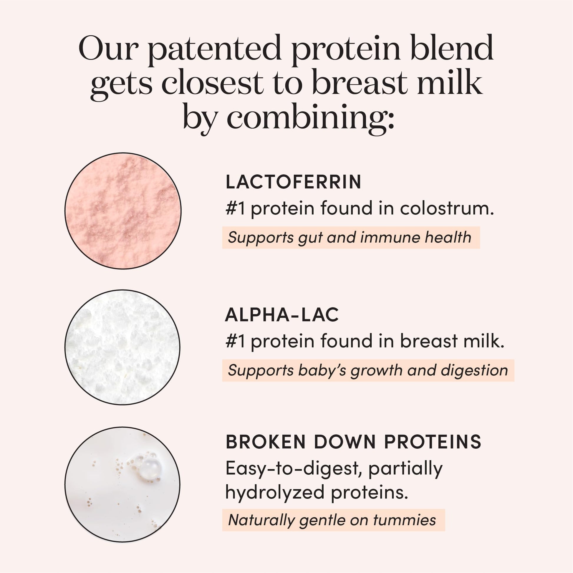 - Featuring a patented protein blend that gets closest to breast milk—with the 2 most abundant proteins found in breast milk, plus broken down proteins.