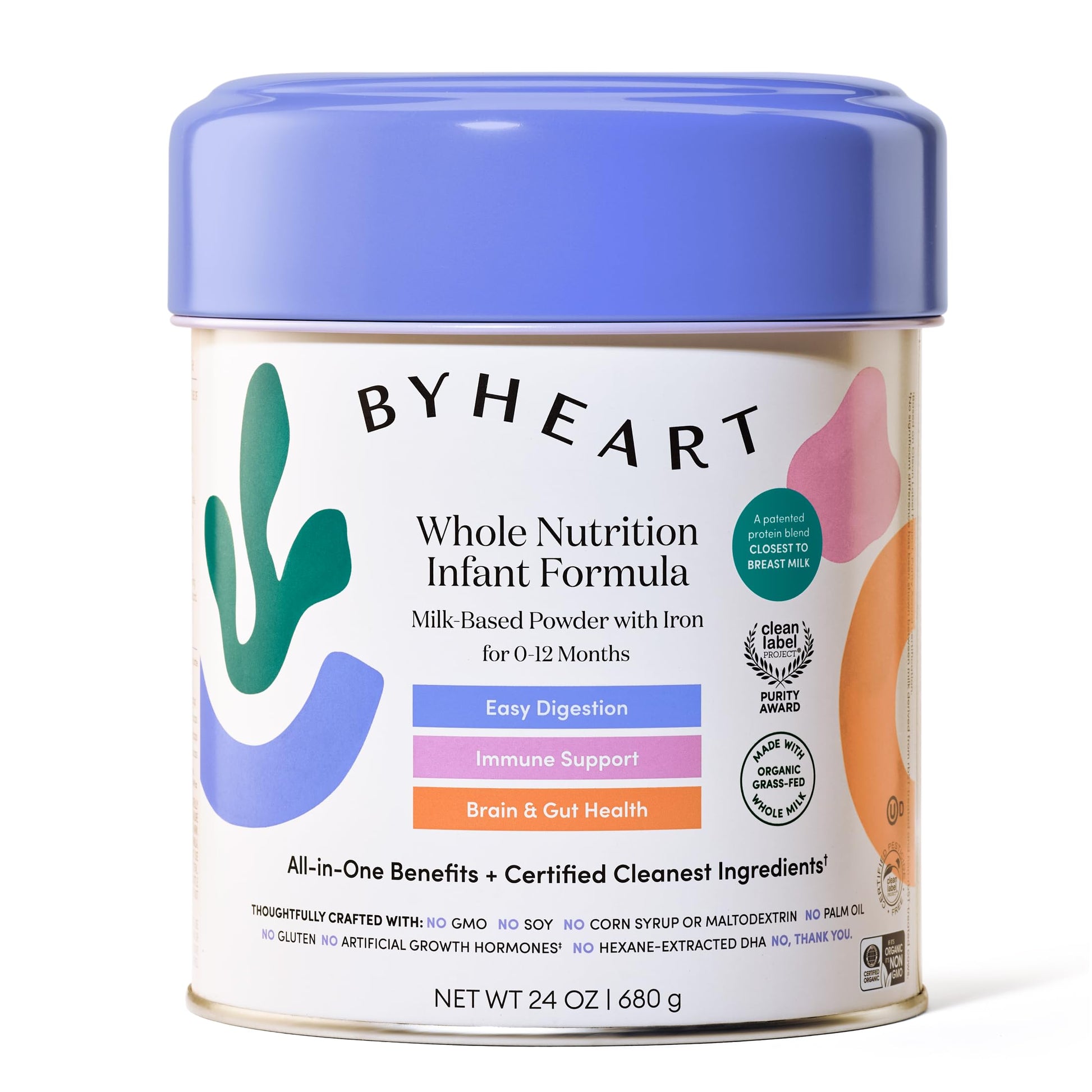 ByHeart Whole Nutrition Infant Formula Powder for Infants 0-12 Months, Made With Organic Grass-Fed Whole Milk, Clean Label Project Certified, Closest-to-Breast Milk Baby Formula Patented Protein Blend (24 Ounce (Pack of 1))