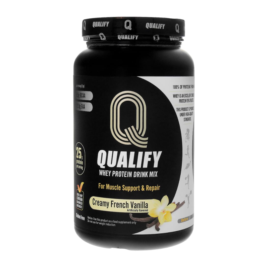 Details: Qualify Whey Protein Drink Mix was formulated by certified nutritionists and coaches and is made from 100% whey protein isolates. An easy, delicious way to power your workout and support muscle recovery. Qualify Whey Protein is certified kosher (cholov Yisroel), contains no added sugars, and comes in 5 delicious flavors. Qualify Protein Drink Mix also comes in soy (chocolate and vanilla) and plant-based. All are free of gluten and of banned substances so whatever you choose, you can be sure you are getting the purest, highest quality protein.